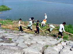 | 大量の流竹木材を人海戦術で所定の場所へ移動しました |