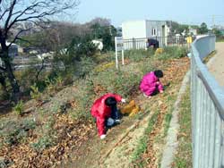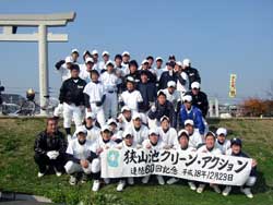 | 本年、最後の大清掃ですので、持ち場所を分担して、狭山池の周囲全部をカバーしました。日頃の少人数 |